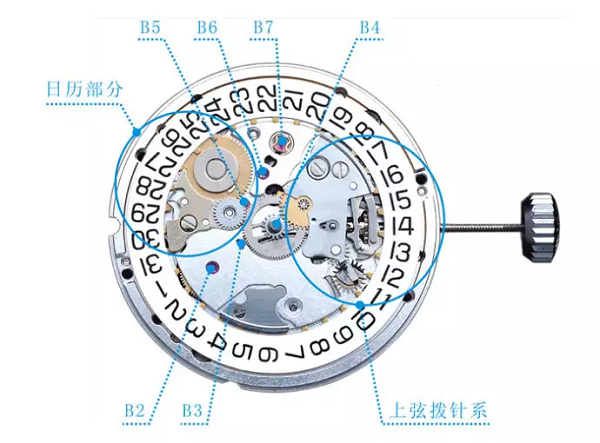 如果轉(zhuǎn)動柄頭上條時,發(fā)生「喳喳」的異常響聲,或者產(chǎn)生頂齒打滑等現(xiàn)象,則說明上條機構(gòu)有故障。